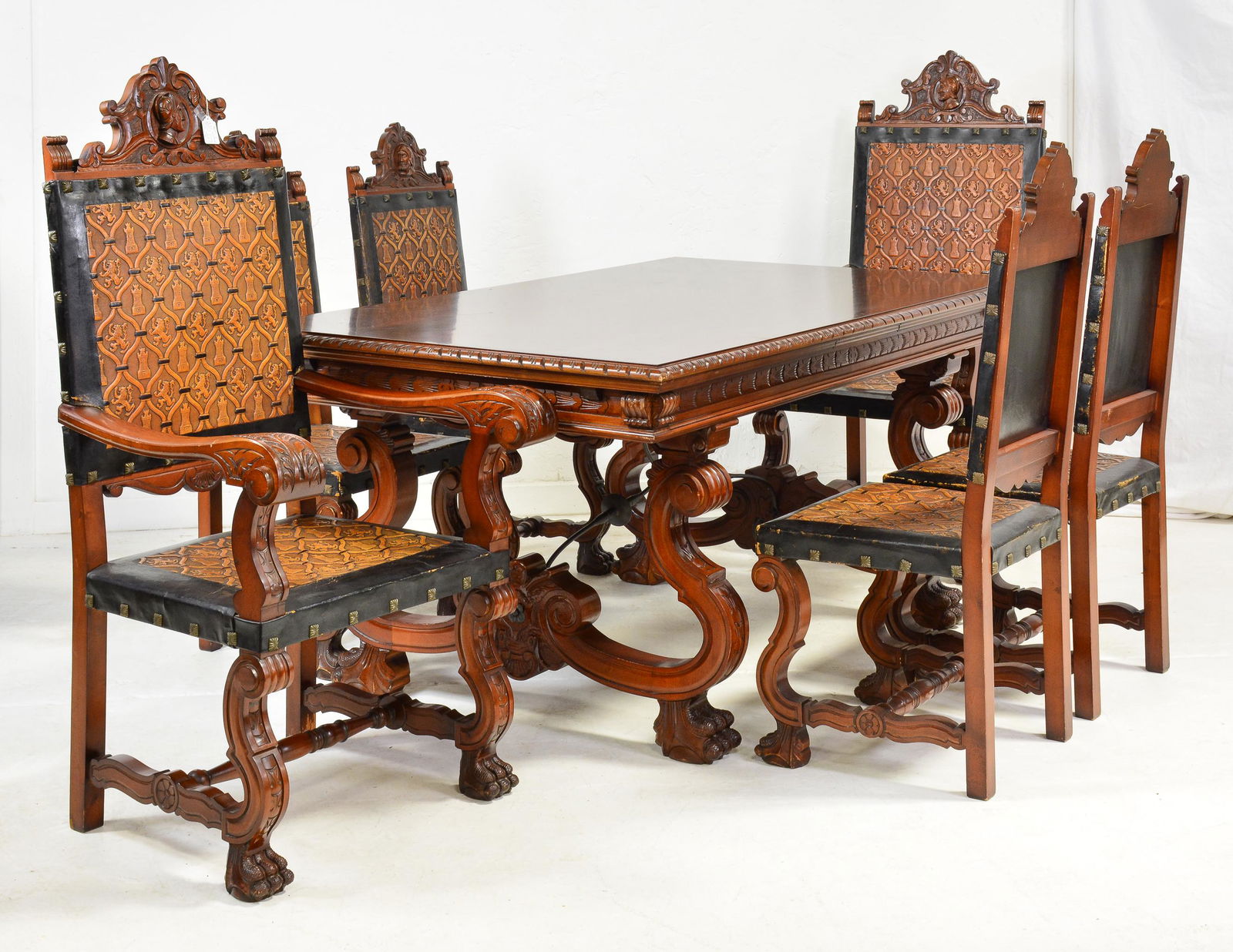 Pair 19th century spanish colonial style chairs with carved backs, status: