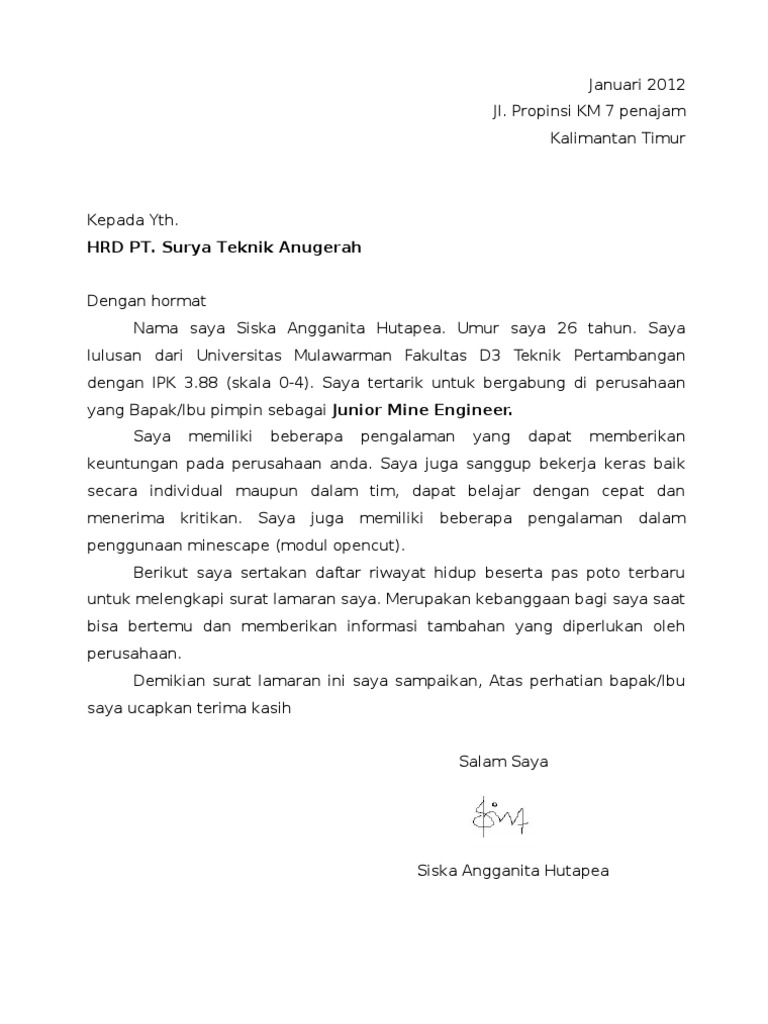 Contoh Surat Lamaran Pekerjaan Untuk Energi Dan Pertambangan Tanpakoma from 1.bp.blogspot.com Maybe you would like to learn more about one of these? Cotoh surat lamaran kerja drever tambang batubara. We did not find results for: Check spelling or type a new query.